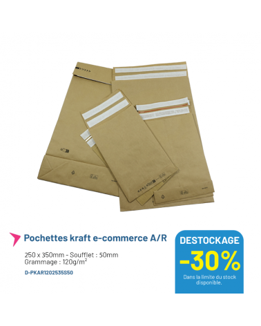 Promo -30% Pochette kraft e-commerce A/R - 250x350mm - Lot... Pochette kraft conçue pour le e-commerce. Idéal pour l'aller-retour de produits. Descriptif : Pochette kraft 250 x 350mm - Soufflet : 50mm -... À partir de Prix 90,30 € Prix 129,00 € -30% HT
