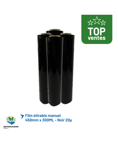 Film étirable manuel noir - 450 mm x 300 m -... Le film étirable manuel 450 mm x 300 m en version noire 20 microns est conçu pour le filmage manuel des palettes, colis groupés et charges... À partir de Prix 124,74 € HT