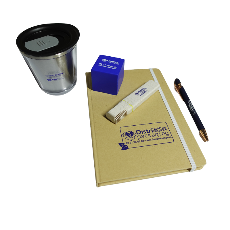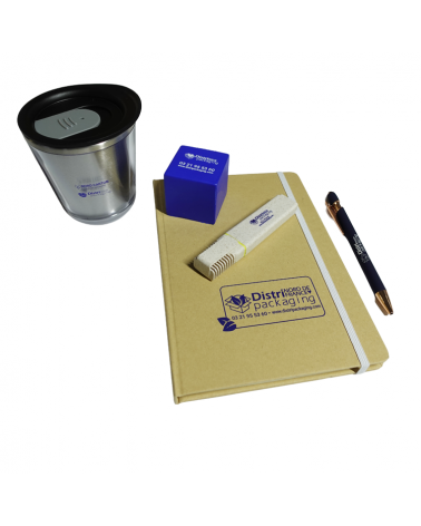 1 carnet de note + 1 stabilo + 1 cube antistress + 1Stylo + 1 mug isotherme