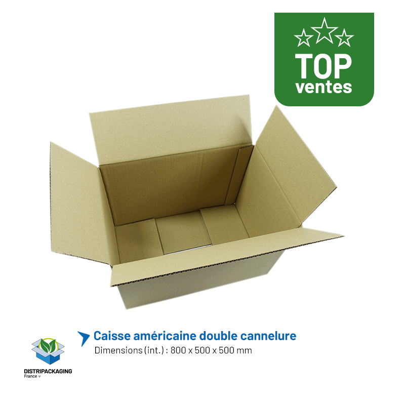 La caisse américaine double cannelure est recommandée pour les marchandises qui demandent une meilleure résistance mécanique. Elle peut être complétée par du calage pour améliorer la protection interne.