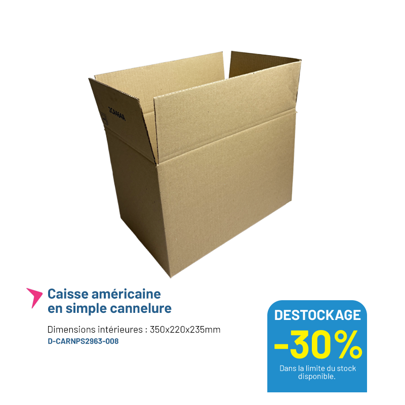 Caisse américaine simple cannelure - 350x220x235mm - Lot de 50