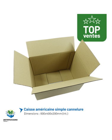Économique : Le carton ondulé est un matériau peu coûteux à produire, ce qui rend les caisses américaines plus Facilité d'utilisation : Un montage simple et rapide. Les emballages carton sont conçus pour être facilement montées, en pliant les rabats et en les scotchant vous fermez et sécurisez votre emballage carton.Cela permet de gagner du temps dans votre chaine d'emballage.