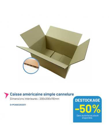 L'emballage résistant pour vos produits légers. Caisse américaine 350x220x235mm Déstockage : -30% 0,44€HT l'unité au lieu de  0,63HT...