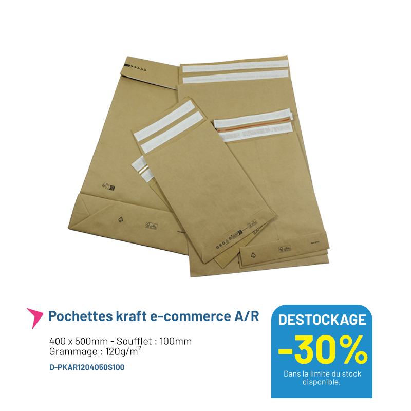 Pochette kraft e-commerce A/R - 400x500mm - Lot de 100