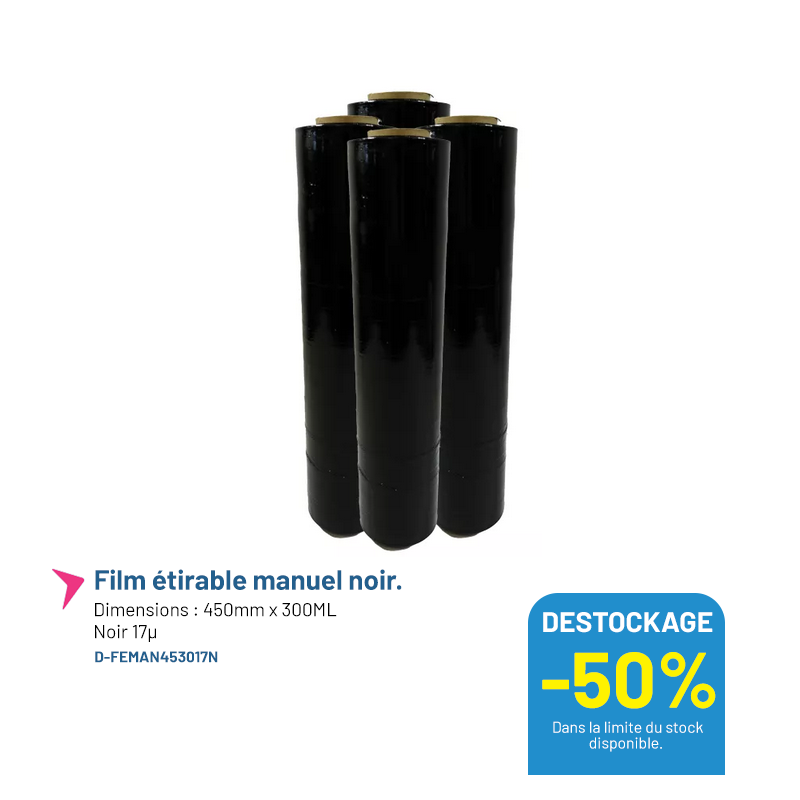 Film étirable manuel noir 450mm x 300ML - Lot de 6