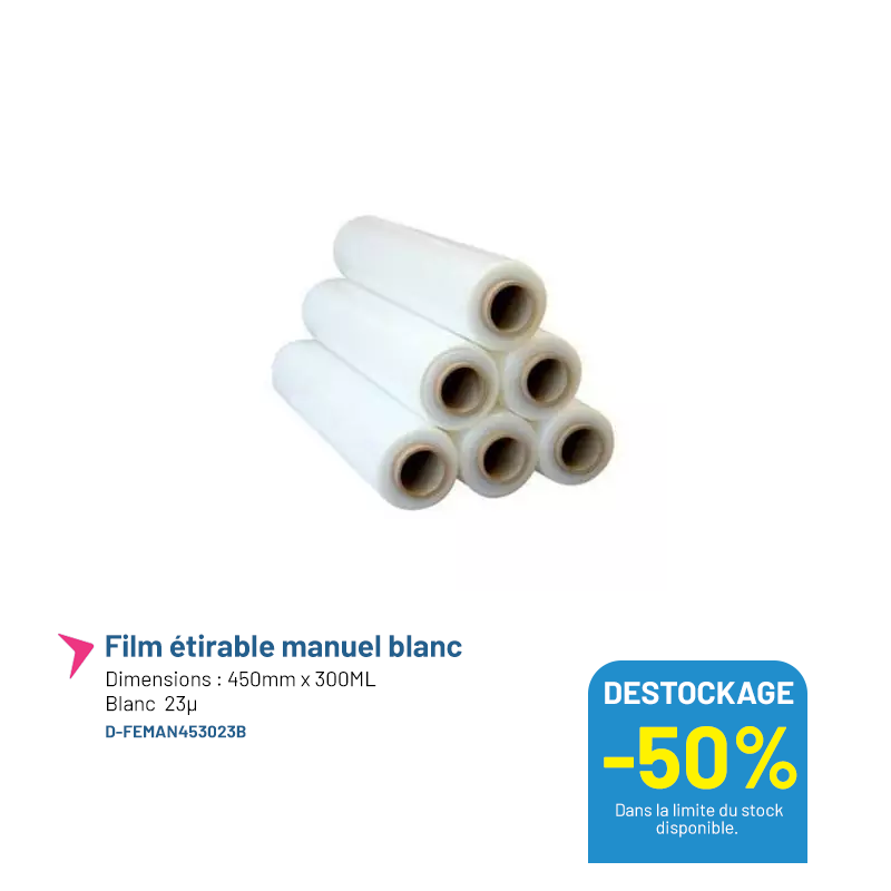 Film étirable manuel blanc - 450mm x 300ML - 23µ- Lot de 6
