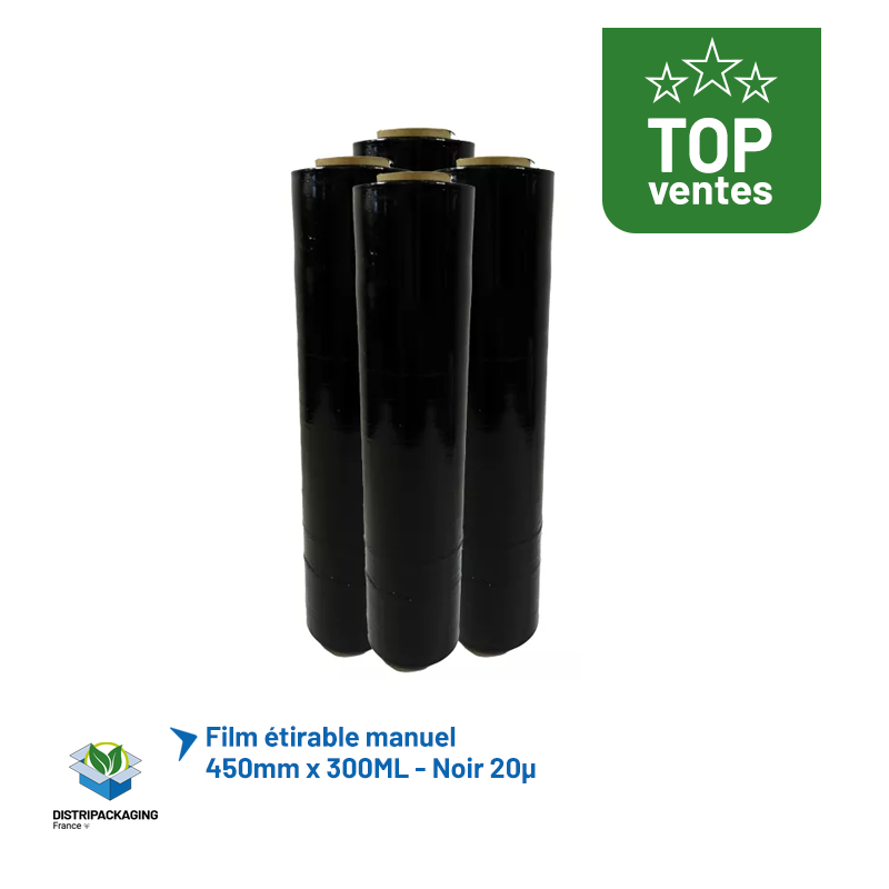 Film étirable manuel noir - 450 mm x 300 m - Lot de 6