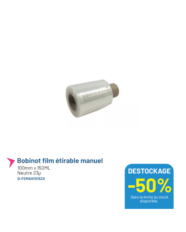 Promo -50% Bobinot film étirable manuel 100mm x 150ML -... Les bobinots de film étirable sont pratiques pour le fardelage de colis légers ou pour assurer manuellement la stabilité du haut de vos palettes... À partir de Prix 14,95 € Prix 29,90 € -50% HT